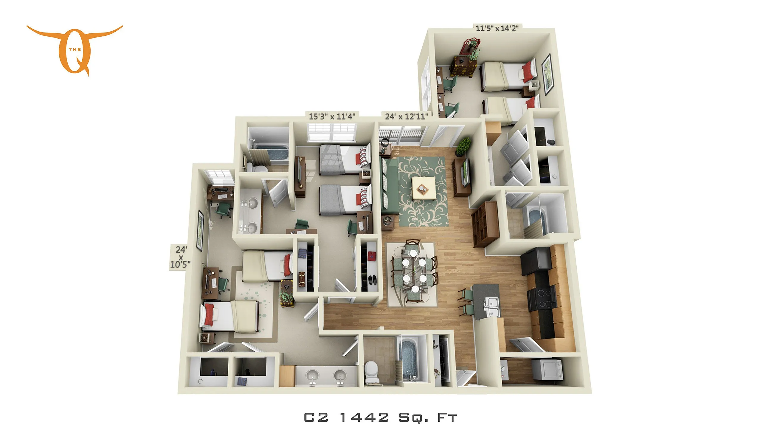 At The Quarters on Campus, you’ll experience college the way you’re supposed to — tailored to you! Our vibrant student apartments in Austin offer a variety of convenient amenities, including a 2,500-square-foot, leading edge fitness center; multiple parking garage options; and spacious studio and 1-4 bedroom apartments. Our apartments include unfurnished and furnished student apartments that were designed with students in mind — from upscale finishes and appliances to individual bathrooms and included utilities. Apply online today, or stop by to see for yourself all that The Quarters on Campus has to offer!